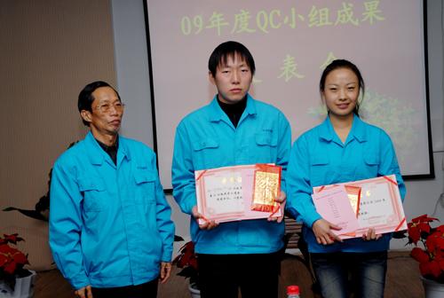 ??????? 獲得優(yōu)秀獎(jiǎng)的是:透鏡一部KING QC小組、薄膜器件部?jī)?yōu)化QC小組、透鏡一部螺絲釘QC小組、光機(jī)制造科鏡頭QC小組、棱鏡一部創(chuàng)新QC小組、電子公司組裝班QC小組、透鏡三部研磨工序QC小組