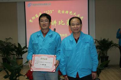 | ??????? 虎步奔騰開勝景,春風(fēng)浩蕩展鴻圖。為促進公司各單位認(rèn)真領(lǐng)會集團公司“3333”戰(zhàn)略和利達(dá)光電“123”戰(zhàn)略的深刻內(nèi)涵,進一步激勵員工統(tǒng)一認(rèn)識,轉(zhuǎn)變觀念,增強信心,立足崗位,奮發(fā)有為,努力實現(xiàn)公司2010年經(jīng)營目標(biāo),3月26日晚上7點,利達(dá)光電黨總支在104#四樓培訓(xùn)室舉辦了“貫徹落實123,突出特色大發(fā)展”演講比賽。利達(dá)光電總經(jīng)理李智超和各單位員工代表一起來到演講比賽現(xiàn)場,聆聽我們利達(dá)員工春天的戰(zhàn)歌,給參賽選手們帶來了莫大的鼓勵和支持。在充滿激情的《學(xué)習(xí)123 踐行123》的詩朗誦中演講比賽拉開了帷幕。當(dāng)晚共有11名選手參加比賽,演講內(nèi)容以123戰(zhàn)略為指導(dǎo),緊密結(jié)合各單位工作實際和本職工作。選手們精彩的演講中飽含著激情,帶來了感動,大家盡情暢談了自己對123戰(zhàn)略的理解,彰顯了科技人員和基層員工、奮力拼搏、積極向上的良好精神風(fēng)貌。選手們以充實的內(nèi)容、優(yōu)美的語言和飽滿的感情贏得了評委和聽眾們的陣陣掌聲。 ??????? 來自精密薄膜工程部的李曉佳的演講內(nèi)容給大家內(nèi)心留下了很深的觸動。她給我們講述的是車間一名普通班長的故事,那是一個愛崗敬業(yè),無私奉獻,值得尊敬的班長。為了干好自己的本職工作,盡職盡責(zé),加班加點,即使發(fā)燒也要堅持把工作保質(zhì)保量的完成。這是多么可貴的一種愛崗敬業(yè)的精神啊,敲動著我們內(nèi)心最深處的感動,讓我們內(nèi)心不禁對這樣一位班長肅然起敬。她是我們學(xué)習(xí)的榜樣,是愛崗敬業(yè),無私奉獻的榜樣。騰飛發(fā)展中的利達(dá)正是需要很多個這樣普通而又可敬的基層班長,帶領(lǐng)我們廣大員工用自己勤勞的雙手和智慧創(chuàng)造出一個又一個新的突破,譜寫一曲又一曲新的輝煌。 ??????? 在當(dāng)晚比賽中11位選手都激情澎湃,信心滿懷。平日里,他們都是在車間兢兢業(yè)業(yè)、默默的勞作,而今晚,他們變成了舞臺上的主角,各自在賽場上盡情揮灑才情,侃侃而談,在利達(dá)這片廣闊的天際里,自由地展翅翱翔。 ??????? 最終,投影事業(yè)本部獲得了此次演講比賽的組織獎。朱高磊獲得了一等獎。崔銀英、張文勇獲得了二等獎。李慧東、田冬梅,朱清濱獲得了三等獎。李曉佳、王芳、買靜、蘭勇、李文嘉獲得了比賽優(yōu)秀獎。 李總在會上講話,對此次演講比賽給予了很高的評價和肯定。李總認(rèn)為此次演講比賽舉辦的很成功,很有特色,包含了利達(dá)公司各個方面,還涉及到模具,電子,安全等等多方面全方位;各位選手演講內(nèi)容都是緊密結(jié)合自身工作實際,求真務(wù)實,立足本職工作崗位;參賽選手都來自基層,演講的內(nèi)容反映了公司的當(dāng)前現(xiàn)狀,代表了廣大員工的心聲。李總對選手們精彩的演講表示祝賀,并希望公司以后多多開展類似此類的活動,鼓舞士氣,展示利達(dá)員工昂揚的斗志和激情。同時李總對選手們也給予了殷切的希望,年輕的一代代表著公司發(fā)展的希望,充滿著朝氣與活力。李總鼓勵大家一定要扎實打好基礎(chǔ),健康成長,實現(xiàn)自身的可持續(xù)發(fā)展,在工作中創(chuàng)造出新的輝煌。 ??????? 下圖是現(xiàn)場剪影: |