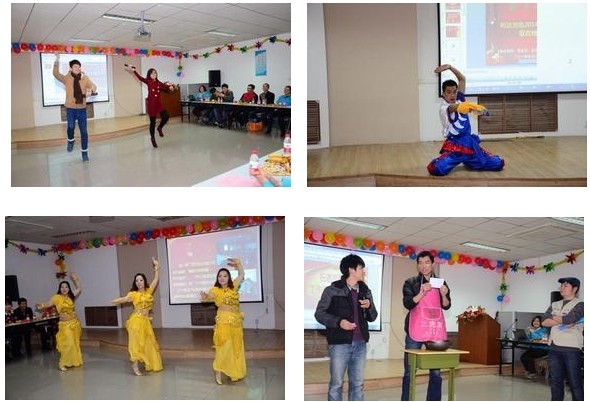 ????? 晚會(huì)現(xiàn)場雖然比較節(jié)儉,卻處處洋溢著喜氣洋洋的和諧氛圍。晚會(huì)內(nèi)容豐富多彩,包括歌曲、戲曲、舞蹈、小品、魔術(shù)、男女對唱、武術(shù)等十五個(gè)節(jié)目,給全體觀眾們帶來了一場美妙的視聽盛宴。一首合唱歌曲《猜》拉開本次晚會(huì)的帷幕;熱辣,奔放的西班牙之夜、印巴熱舞給大家?guī)У搅水悋橛颍桓鶕?jù)公司文化改編的小品《找工作》妙趣橫生,耐人尋味,迸發(fā)出積極向上的正能量;武術(shù)表演懸念頓生,豪氣沖天;歌曲《暗香》、《猜》演繹了情深意長、溫馨浪漫的真摯情感;詩朗誦《咱們工人有力量》,節(jié)目巧妙運(yùn)用詩朗誦獨(dú)特的語言藝術(shù),謳歌公司發(fā)生的變化和取得的輝煌成就,歌頌了利達(dá)人的敬業(yè)精神、團(tuán)隊(duì)合作精神,真情流露,感人肺腑,讓在座的觀眾贊嘆;小品《胡導(dǎo)》以其詼諧幽默的語言、滑稽搞笑的到位表演的藝術(shù)表現(xiàn)形式更是笑爆全場;更有郭富強(qiáng)表演的魔術(shù)和蔣麗的戲曲表演,讓我們領(lǐng)略了利達(dá)人別樣的激情與風(fēng)采。抽獎(jiǎng)活動(dòng)穿插期間,將聯(lián)歡會(huì)氣氛一次次推向高潮。
