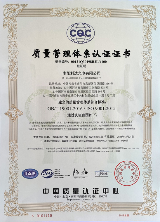 質(zhì)量管理體系認(rèn)證證書(中文)