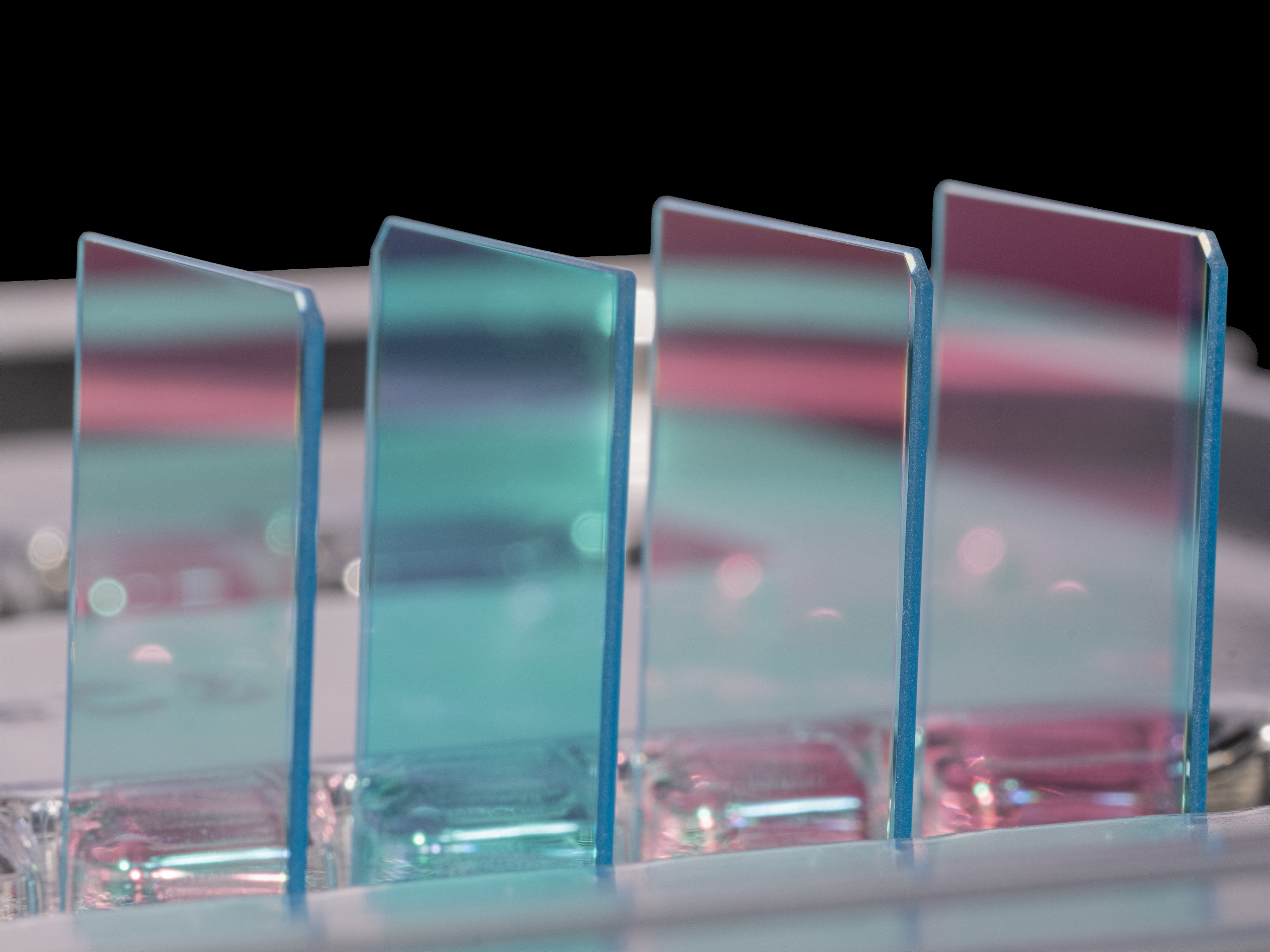 水晶藍(lán)玻璃膠合品特征: 具有水晶的雙折射功能和藍(lán)玻璃的抗角度功能的水晶與藍(lán)玻璃膠合品被廣泛使用在單反相機(jī)..